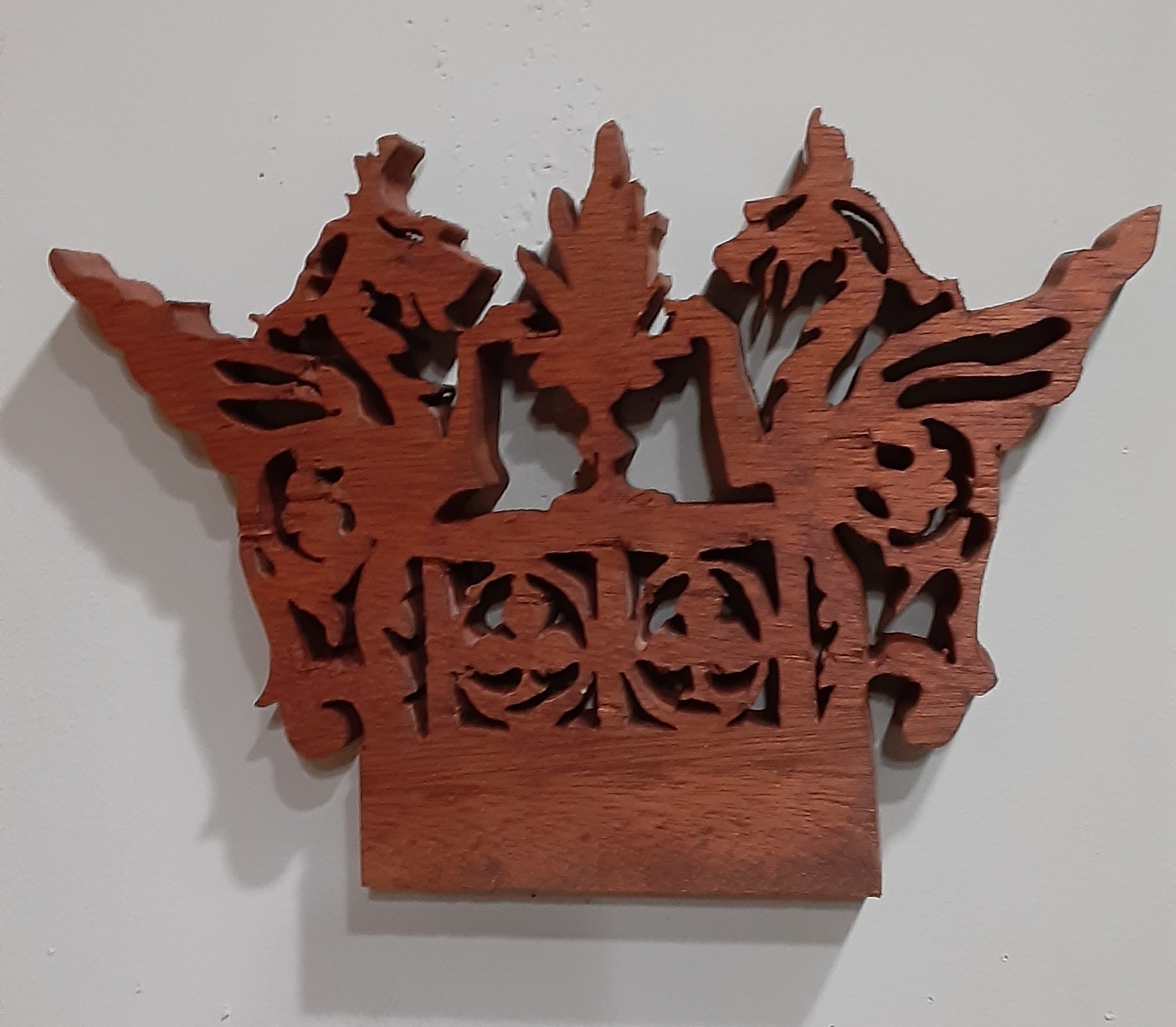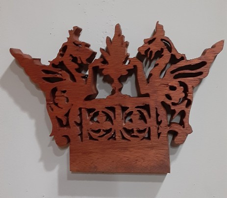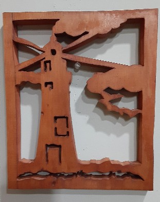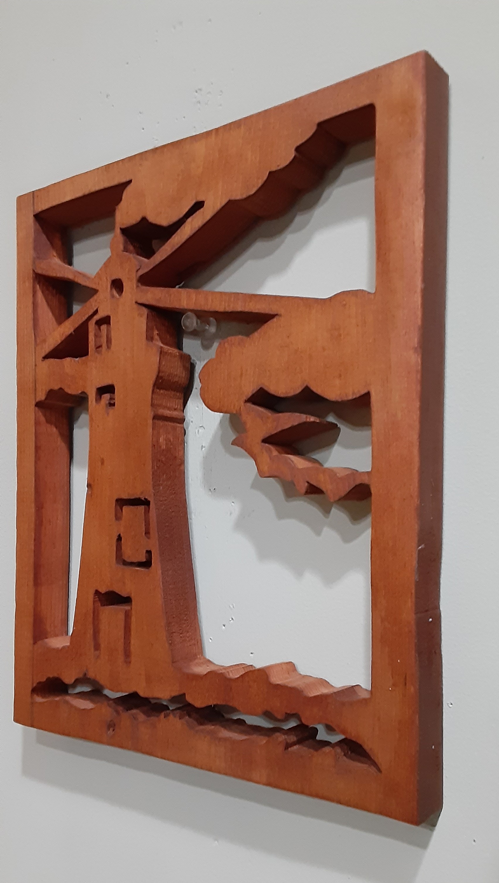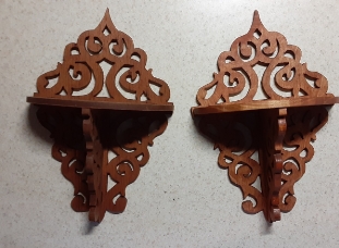 These pieces are small and can be purchased as a pair or as a stand alone. Stained on one side and are hinged and ready to be hung. Size 9" x 5 1/2" x 1/2".